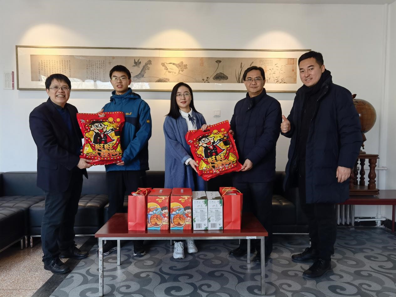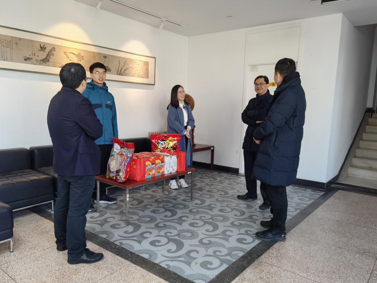 新春佳节将至,304永利集团于2月10日上午开展了2021年寒假春节留校员工慰问活动。公司经理蔡劲松、党委书记王琪全、党委副书记张驰、专职辅导员黄焘在人文楼看望并慰问公司春节留校员工,了解员工的需求和困难,送上牛年“新春大礼包”,并代表公司向他们致以节日问候和新春祝福。