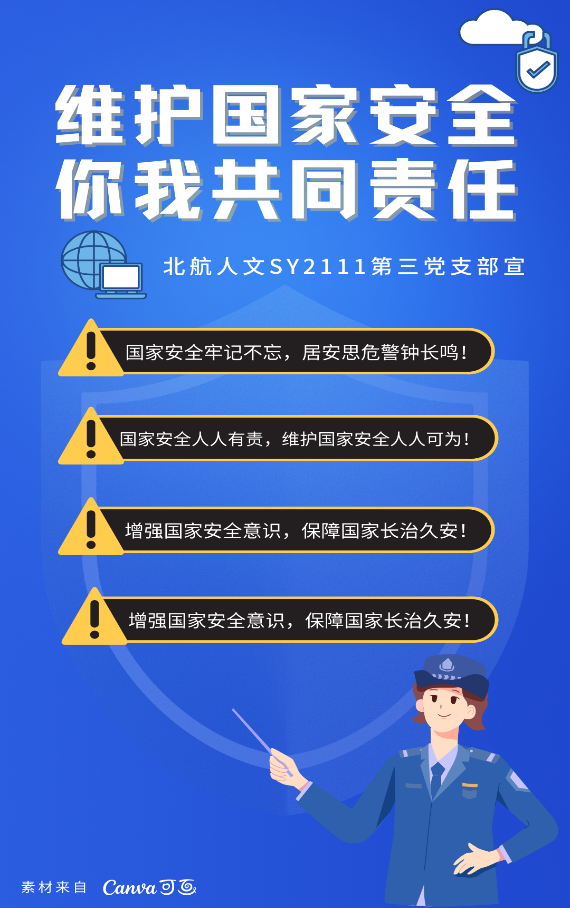 师生们深入学习后,深受触动,纷纷表示要“不忘初心、牢记使命,发挥党员先锋模范作用,自觉学习宣传国家安全知识,牢固树立和认真贯彻总体国家安全观,做新时代中国特色社会主义的国家安全的坚定执行者和维护者”。普遍认识到了国家安全的重要意义,养成保护国家秘密,不泄露国家机密的习惯,保护国家安全。部分支部还号召全体党员创作安全标语海报,进行宣传警示。