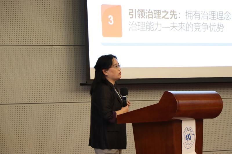 行政管理系主任涂晓芳从专业课程培养方案、公司平台和资源、未来发展三个方面介绍行政管理专业。强调坚持自然科学和社会科学并重、理论与实践并重、知识与能力并重的培养特点,展现管理学“为天地立心,为生民立命”的精神、“欲求公共管理之正道,欲施善政良治于天下”的情怀和价值。