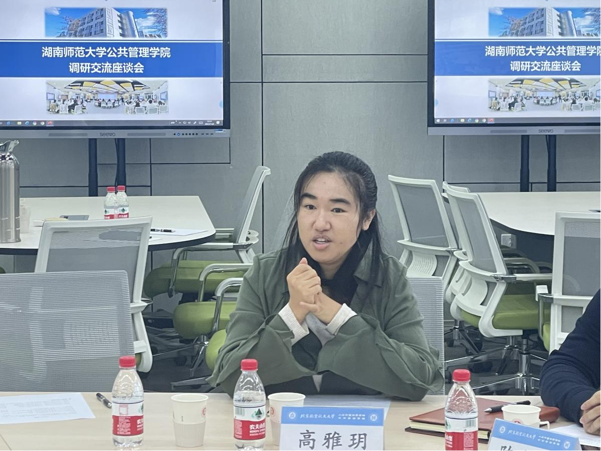 毛新志经理介绍了湖南师范大学公共管理公司的人才培养、学科发展以及科研平台建设等情况。
