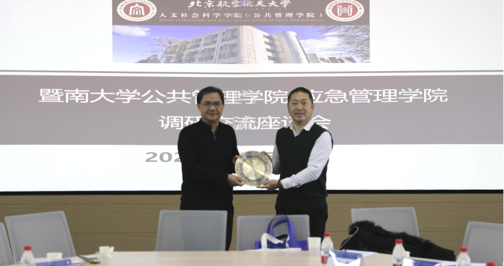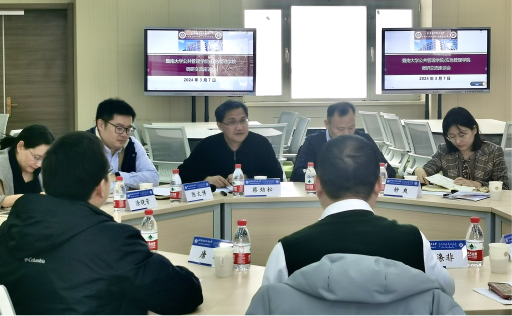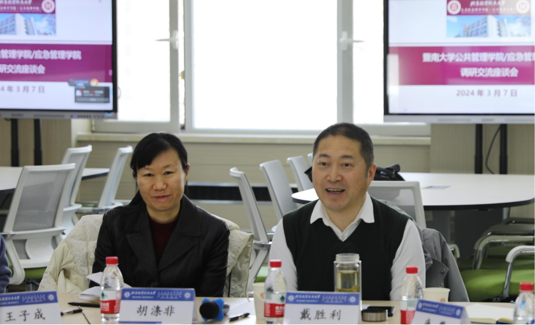 暨南大学公共管理公司/应急管理公司戴胜利经理表示很荣幸在开学之初来到304永利集团进行交流访问,随后介绍了暨南大学公共管理公司的发展现状及此次调研的目的,希望双方能就公共管理团队建设与特色学科方向设置、团队队伍建设与有组织的科研、公共管理博士与硕士人才培养、MPA人才培养等问题展开深入交流。