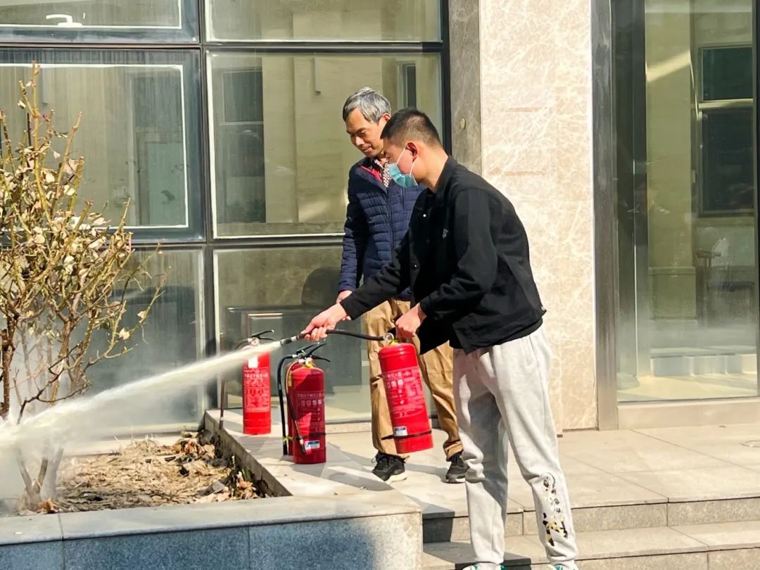 随后,公司朱光辉老师讲解了“一提、二拔、三握、四压”的灭火器使用方法和步骤。师生们按照口诀操作,拿起灭火器,积极参加实操演练。通过实际操作,大家学会了如何正确握持和操作灭火器,对灭火器的使用方法有了更直观的认识。