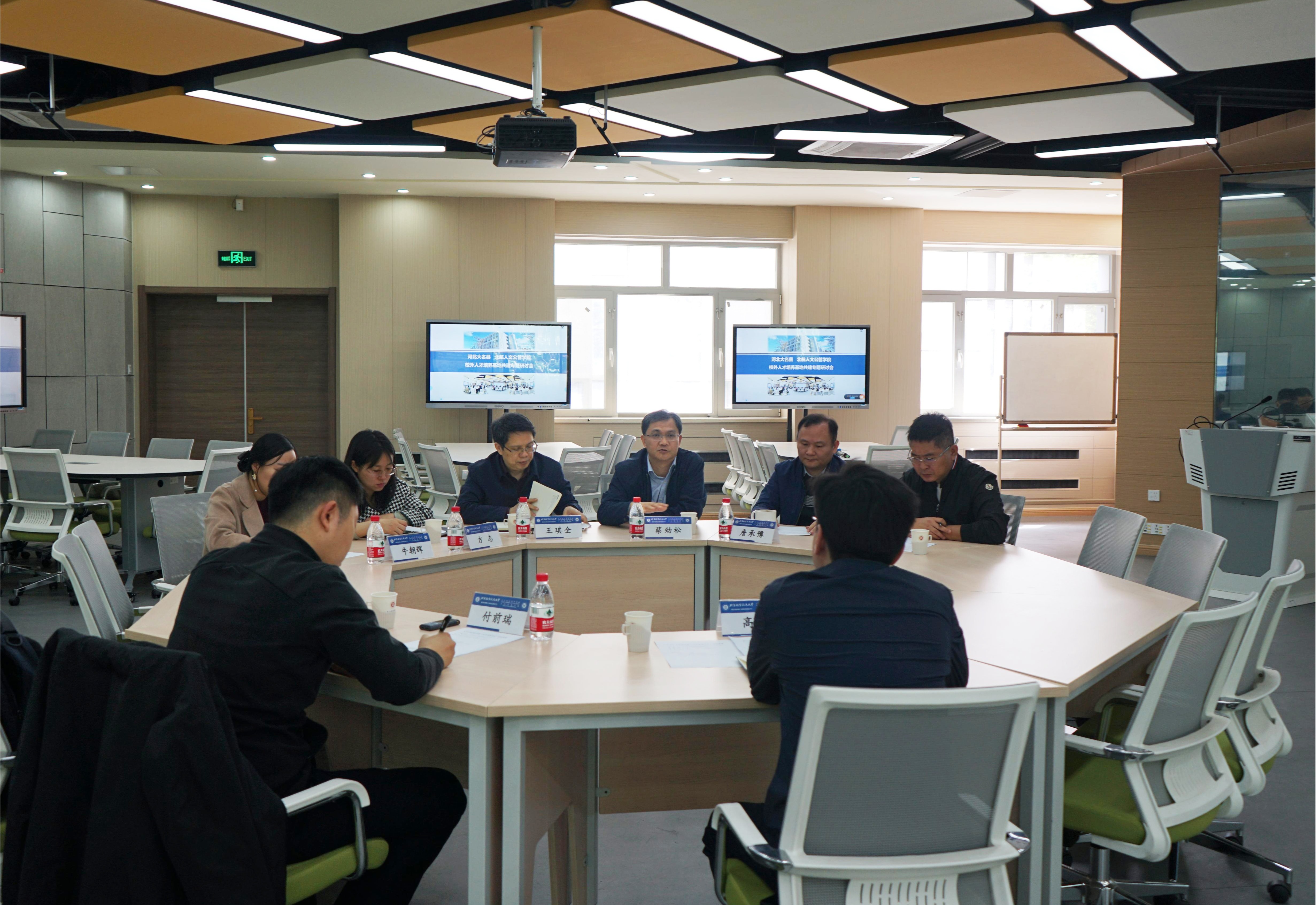 2024年4月15日上午,河北大名县委书记高巍、副县长付前瑞一行来公司进行校外人才培养基地共建情况专题调研,304永利集团经理蔡劲松、党委书记王琪全、副经理詹承豫、党委副书记方志、行政管理系教师李健、经济系教师牛朝辉出席座谈会,会议由公司经理蔡劲松主持。