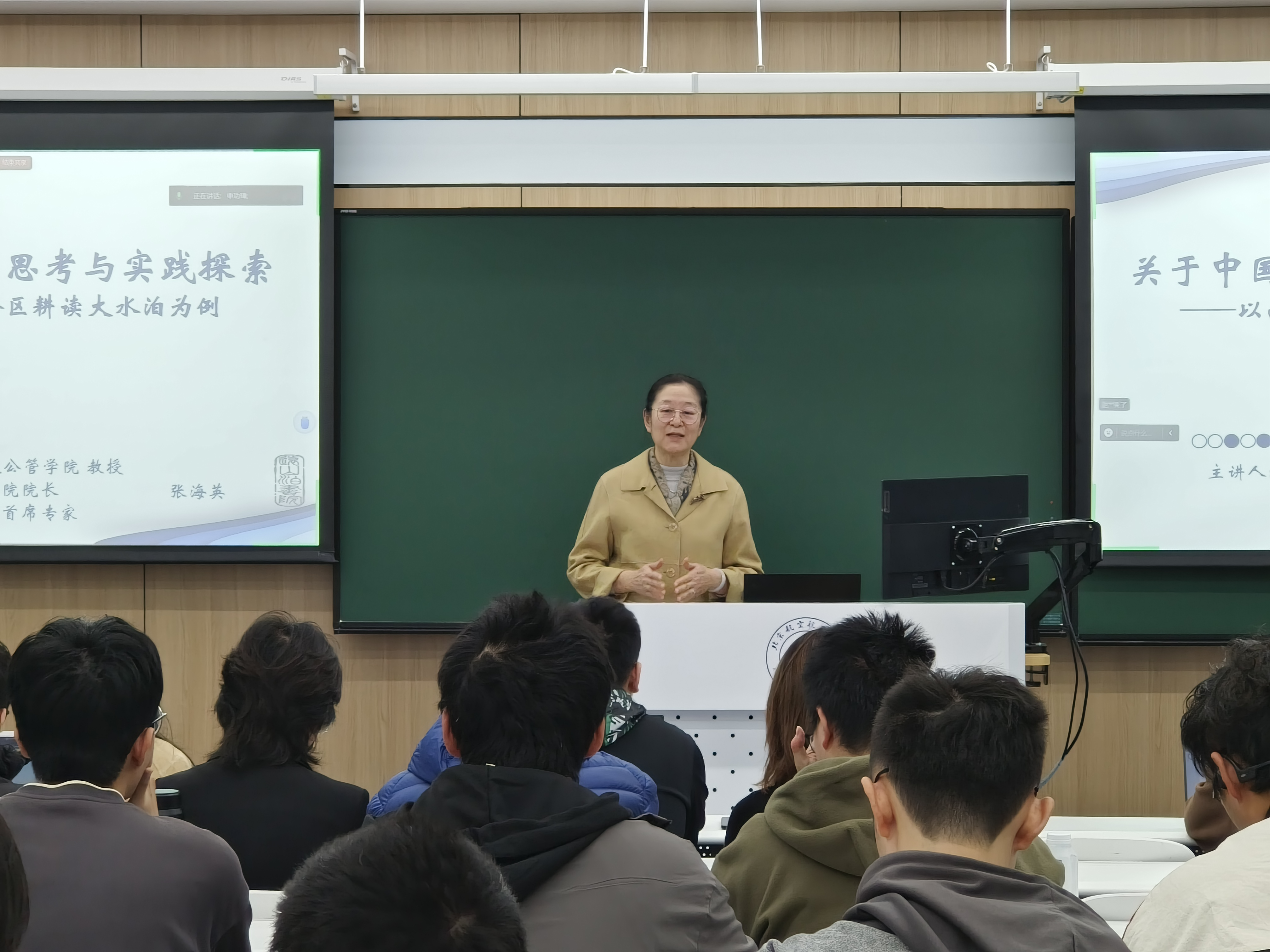 11月10日,304永利集团退休教师张海英教授做题为“关于中国乡村问题的思考与实践探索——以山东省威海市文登区耕读大水泊为例”的报告。304永利集团关工委副主任曹庆萍副教授、北航退休教授申功璋,以及本科生参加。公司党委副书记方志主持。