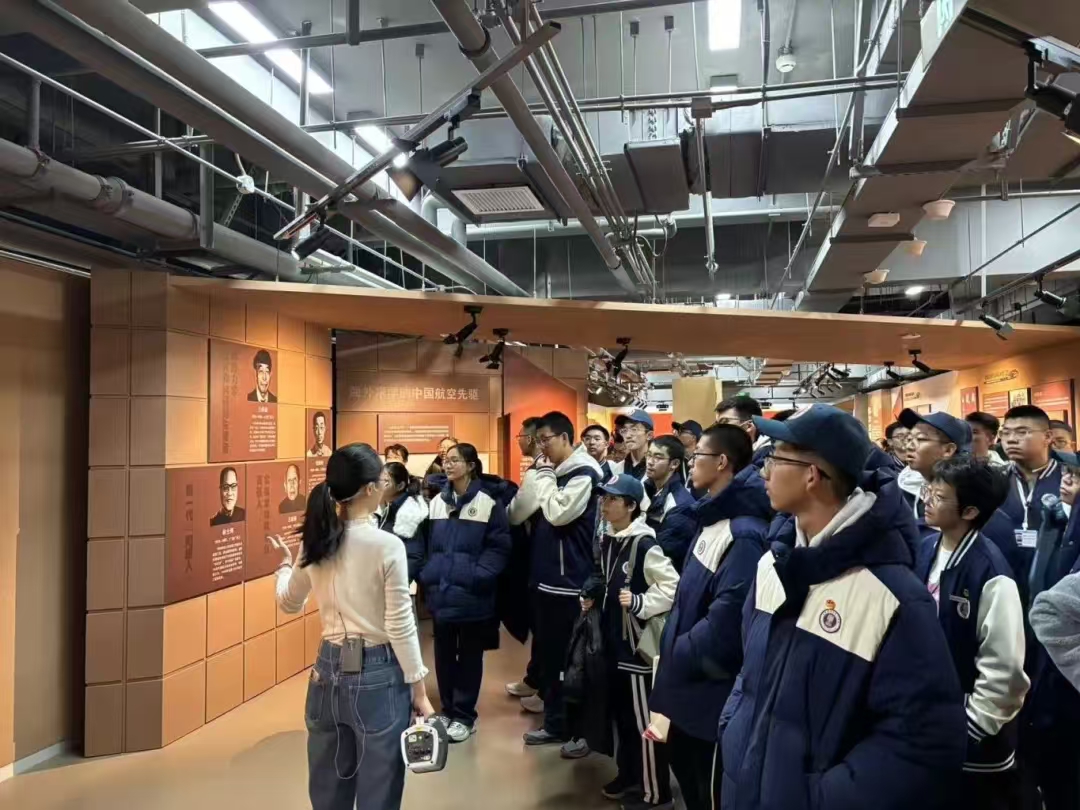 在北京航空航天博物馆,讲解员带领大家参观了长空逐梦、银鹰巡空、神舟问天和空天走廊4个展区,并详细介绍了“北京一号” 轻型旅客机等珍贵文物。看到丰富多样的展品,到访师生深受震撼,并认真学习了航空航天历史与知识。