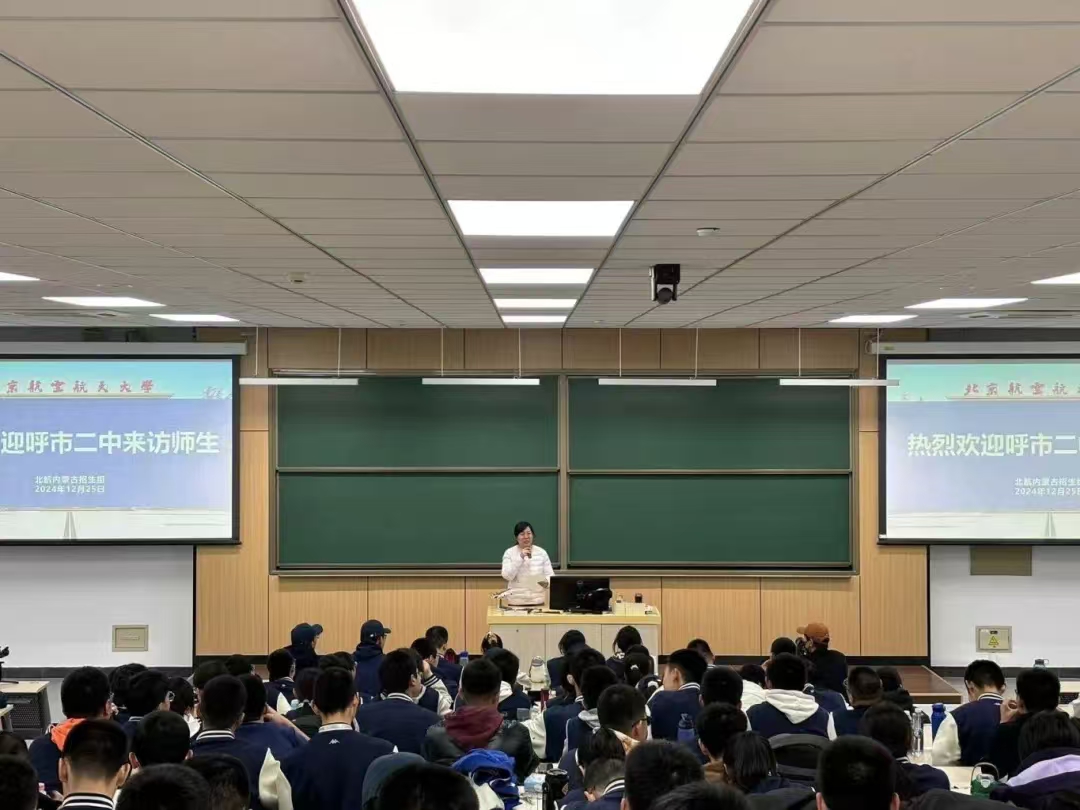 参观结束后,到访师生前往主楼参加报告会。方志老师对到访师生表示欢迎,并简要介绍了北航校情和北航在内蒙古的招生政策。