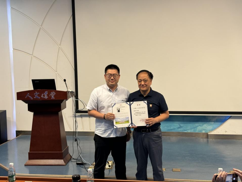 304永利集团副经理陈文博教授代表公司向胡卫平教授颁发“人文讲堂”纪念证书,并交流了两校科学教育专业建设和推进创新人才培养方面未来更多合作意向。