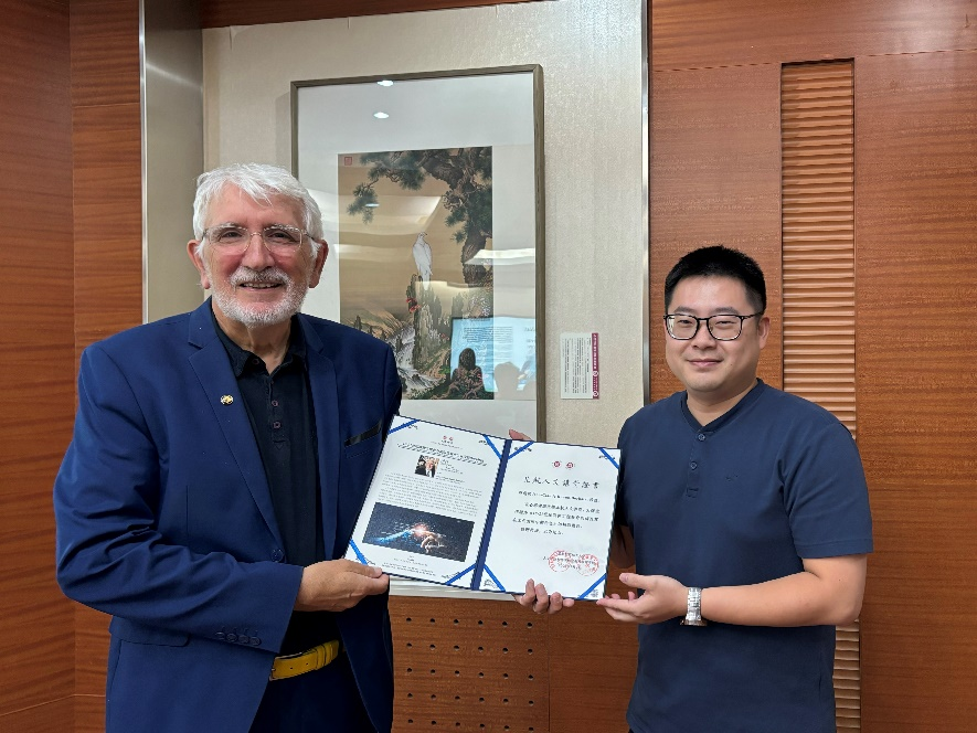 ​304永利集团陈文博副经理为Ruano-Borbalan教授颁发了“人文讲堂”证书,并与Ruano-Borbalan教授就未来进一步开展系列讲座分享、交流研讨、联合培养员工等国际合作进行了深入探讨。