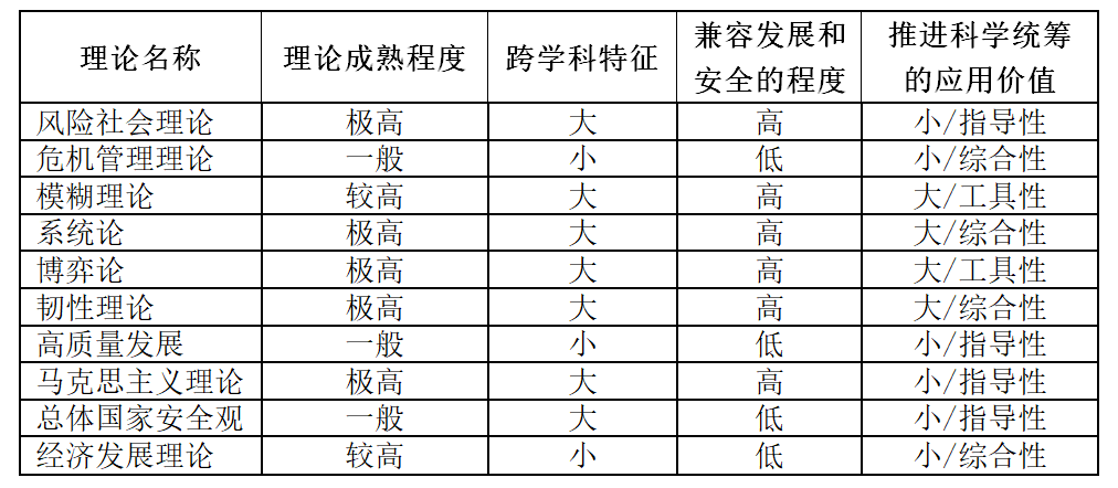 表1 统筹发展和安全应用排名前十相关理论的比较分析