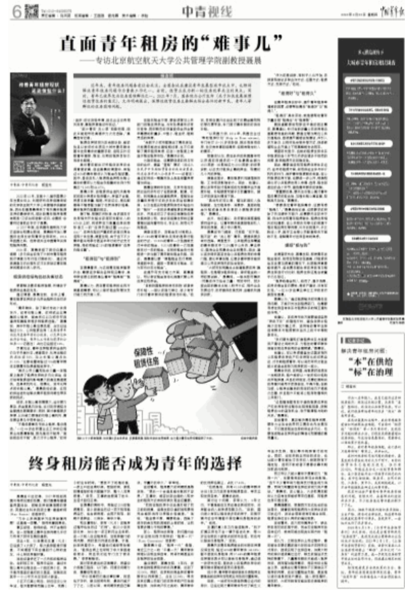 《中国青年报》2023年2月23 日06版整版围绕青年租房问题,专访公司副教授聂晨,并发布研究成果。该专访内容已经被人民网、光明网、中新网等多家重要媒体转载,并引发热议。专访内容如下:
