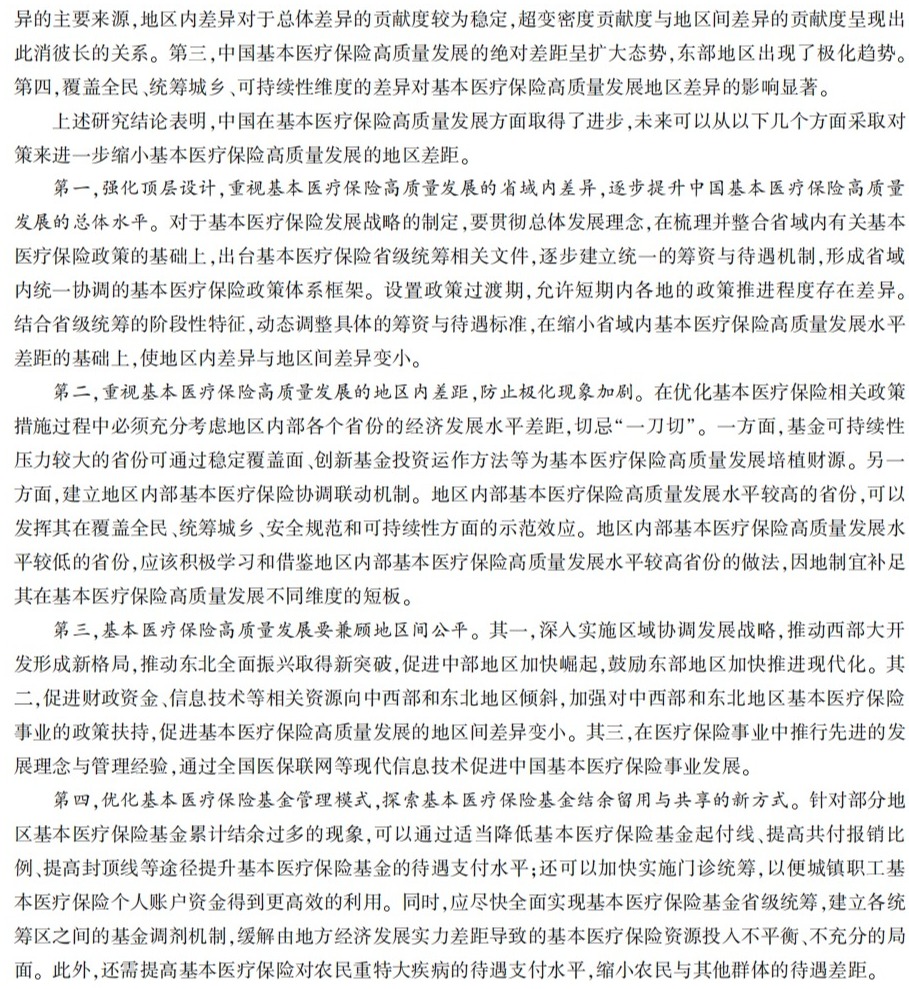 中国基本医疗保险高质量发展的地区差异及形成机理