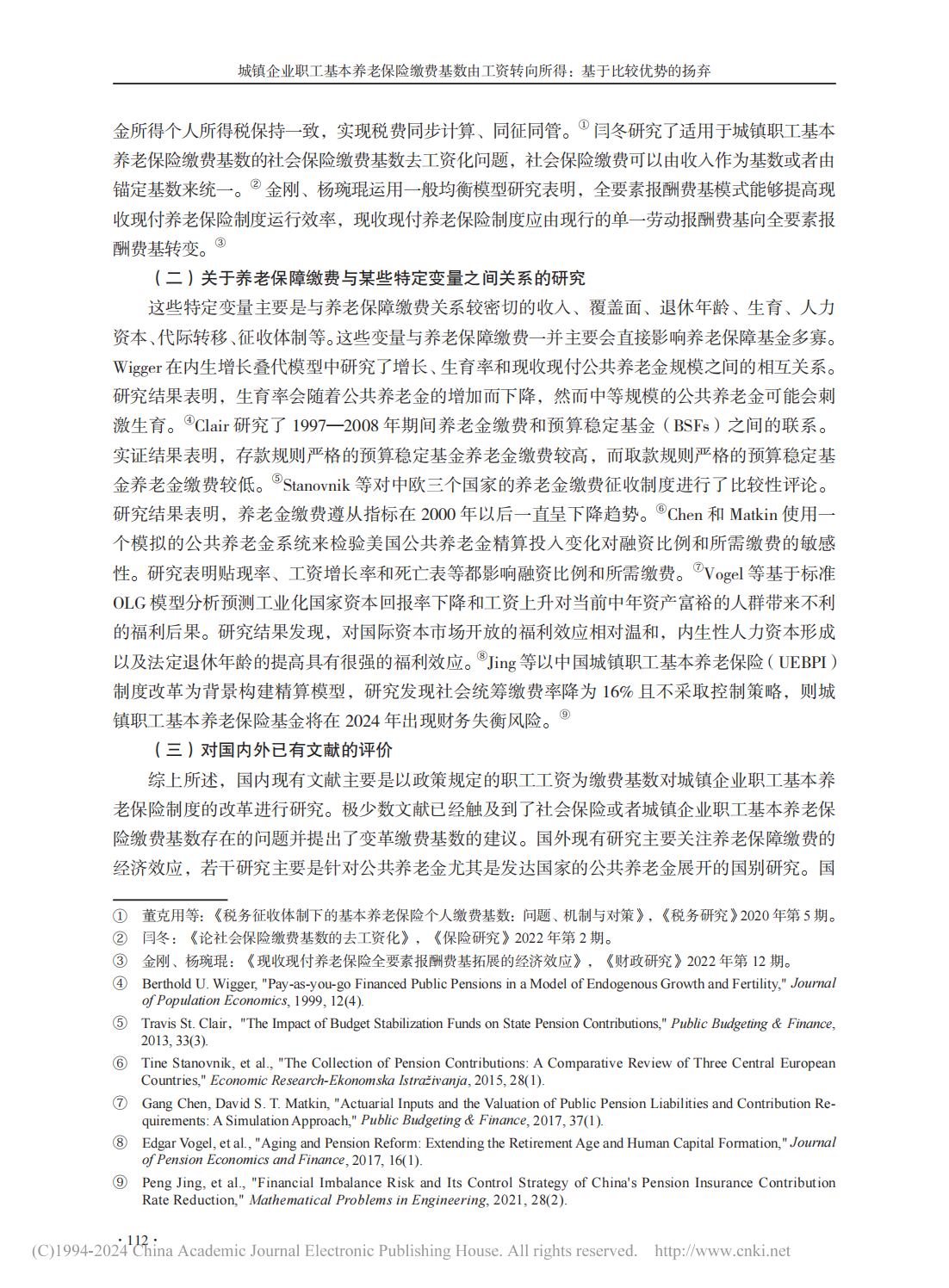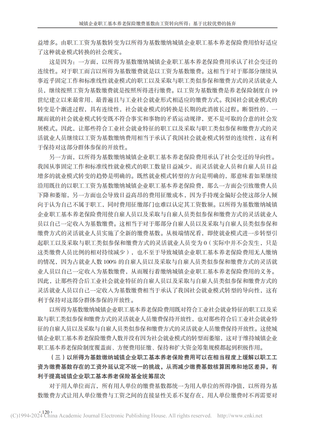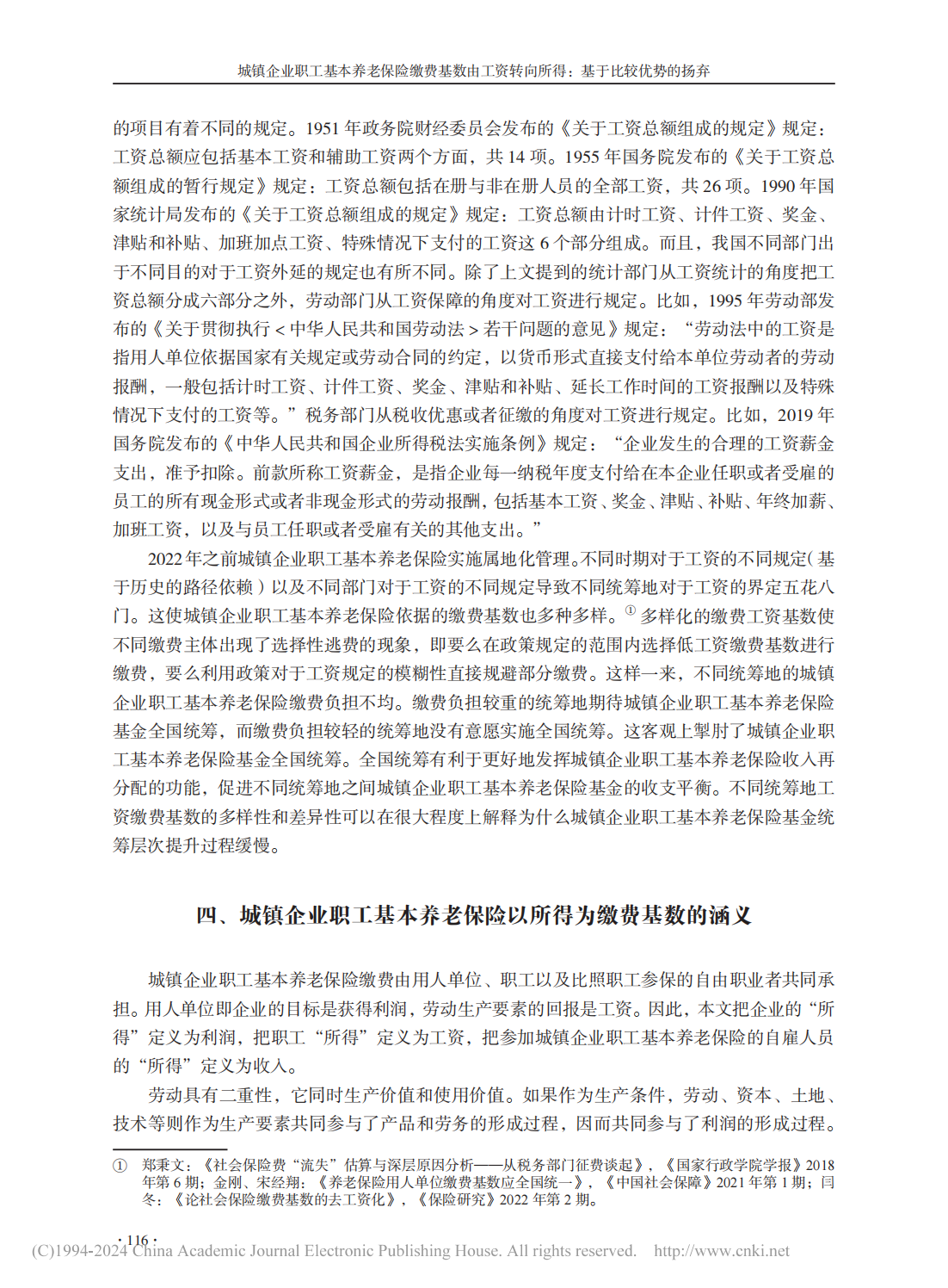 【关键词】城镇企业职工基本养老保险;缴费基数;工资;所得;比较优势;