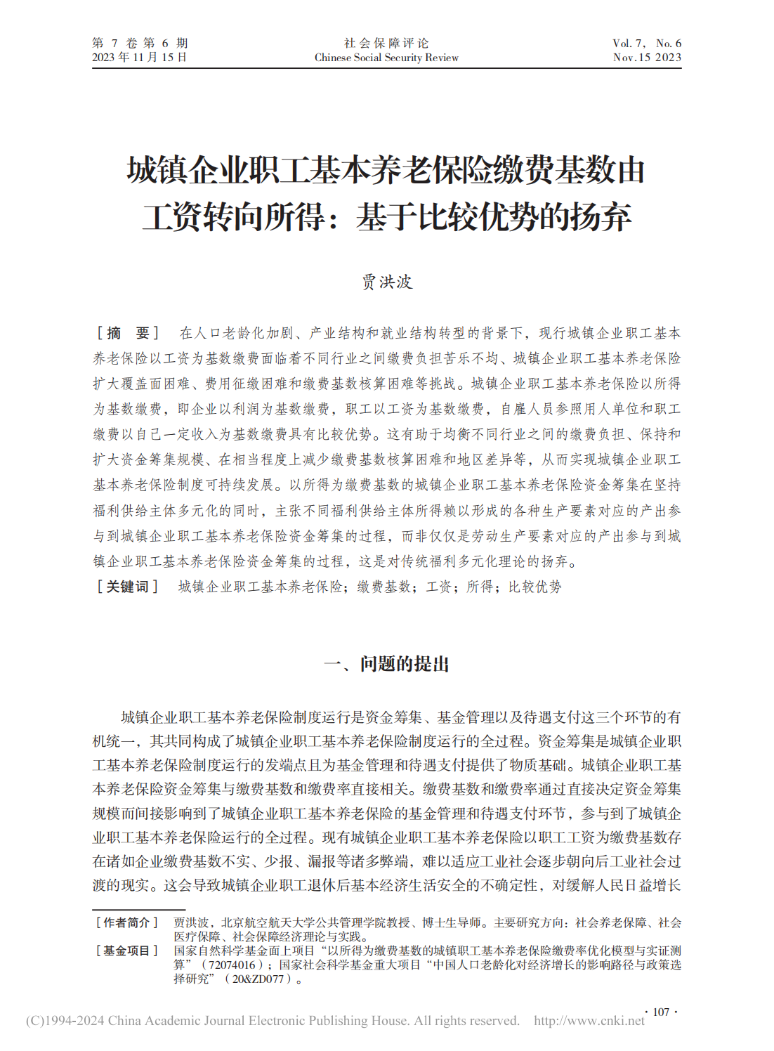 近日,304永利集团教授贾洪波在《社会保障评论》发表《城镇企业职工基本养老保险缴费基数由工资转向所得:基于比较优势的扬弃》论文,以下为文章全文。