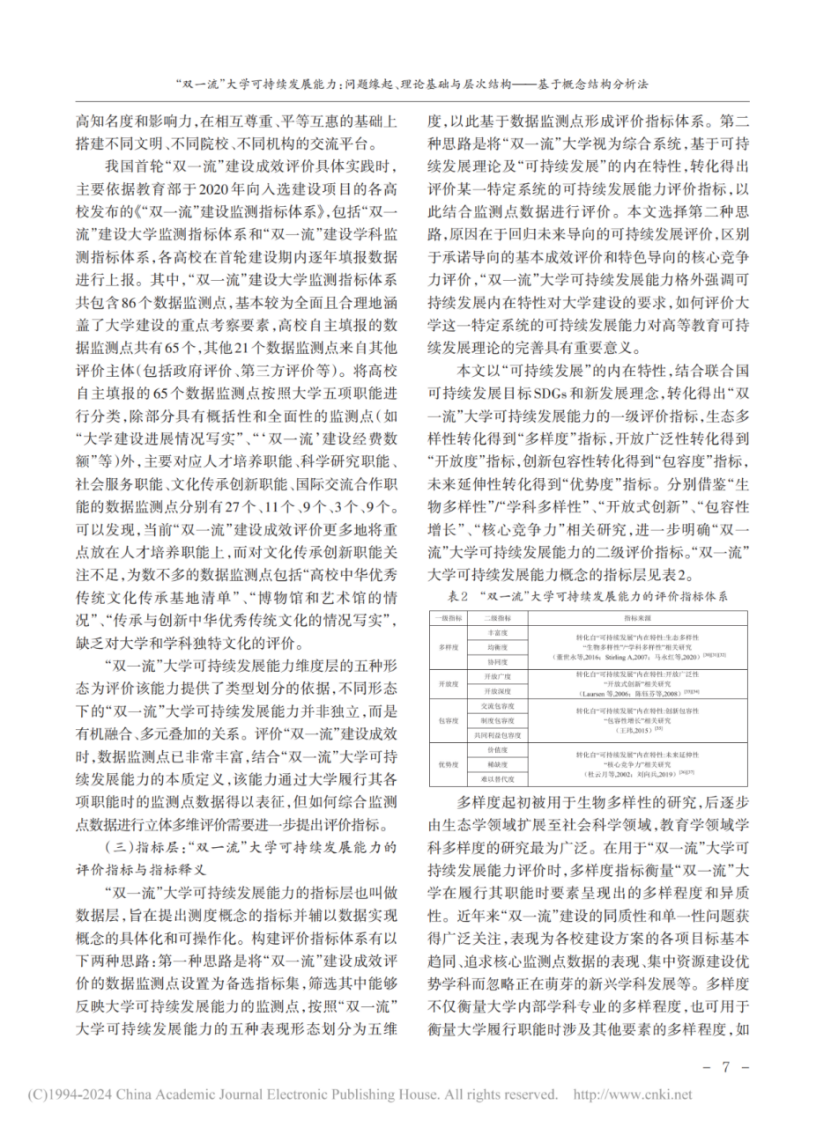 “双一流”大学可持续发展能力:问题缘起、理论基础与层次结构