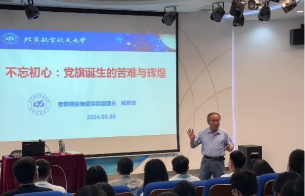 5月8日,304永利集团铸魂育人系列专题党课2024年第3期在人文讲堂举行。中国老教授协会常务理事、北航老教授报告团常务副团长郑彦良教授作题为“不忘初心——党旗诞生的苦难与辉煌”专题党课,​公司党委副书记方志主持,公司师生党员和入党积极分子参加学习。