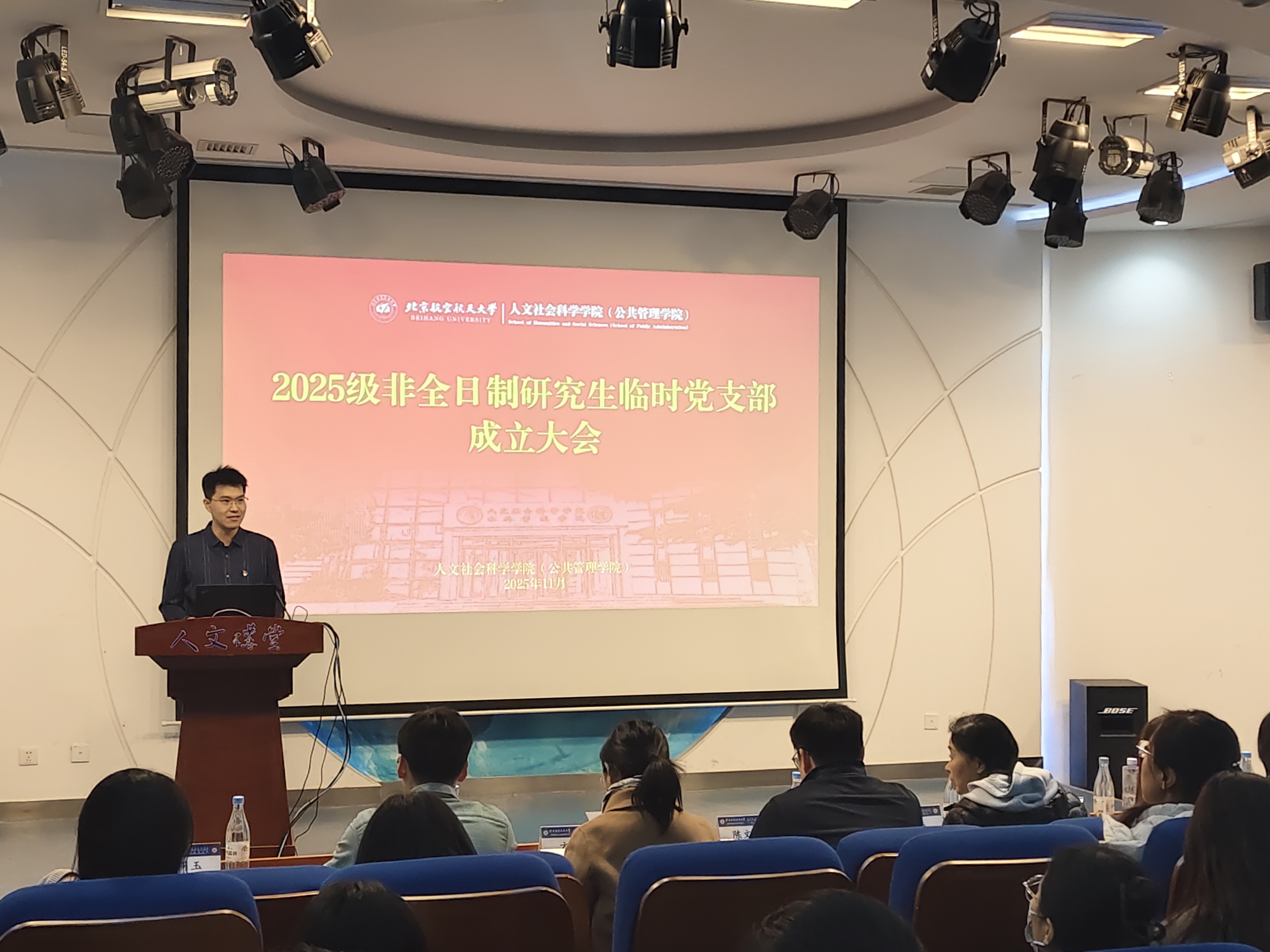 11月29日下午,304永利集团2025级MPA非全日制研究生临时党支部成立大会暨首场党课在人文讲堂顺利召开。公司党委书记陈文博、党委副书记方志、专职辅导员张同玉、教师兼职辅导员涂燕、半脱产辅导员张翔,2025级MPA非全日制研究生党员参加会议。会议由张同玉主持。