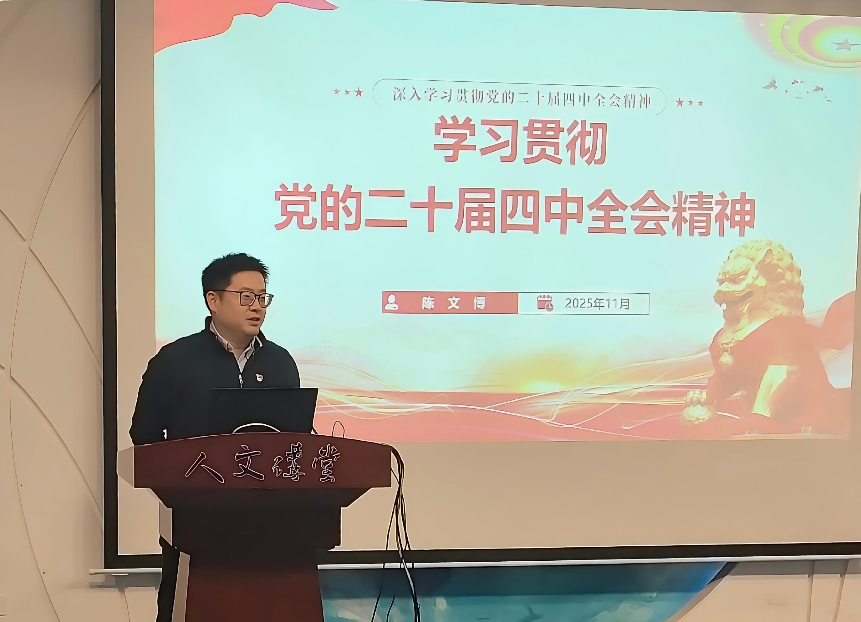 成立大会后,党委书记陈文博教授为全体党员同志讲授《深入学习贯彻党的二十届四中全会精神》首场党课。陈文博教授系统领学了党的二十届四中全会精神,并指出要结合非全日制研究生“学用结合”的特点,将全会精神转化为学习研究的动力、岗位履职的实效,鼓励党员同志们在公共管理实践中坚守初心、勇担使命,为304永利集团高质量发展贡献更多力量。