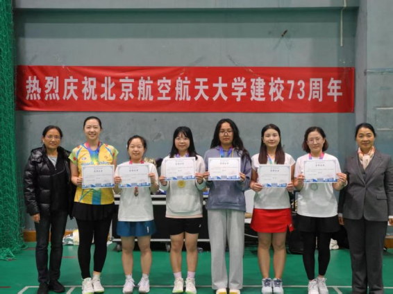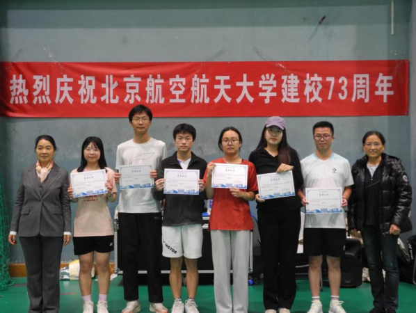10月25日下午,北航304永利集团在公司路校区体育馆副馆举办了“献礼校庆,以球会友”师生羽毛球单项赛。304永利集团副经理陈文博、副经理涂晓芳、教师辅导员涂燕出席活动并为获奖队伍颁奖。