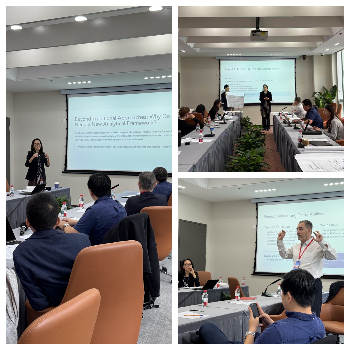 本次咨询会是吕莹副教授主持的国家社会科学基金教育学一般项目“基于全球-国家-地方能动模型的在地国际化人才培养体系研究”的重要活动。会议创新性地将Glonacal(全球—国家—地方)分析框架与“课程—人员—组织”三要素相结合,从理论与实践两个维度系统探讨在地国际化的育人机制。与会专家指出,在全球化与地方化交织的背景下,需要突破传统单一尺度分析的局限,从全球、国家、地方三个层面审视高等教育国际化的多维动力机制。在地国际化不是跨境流动的“次优选择”,而是国际化的有机组成部分。会议采用专家咨询与圆桌对话相结合的形式,分三个阶段展开深入研讨,系统分析了影响在地国际化发展的关键因素,深入探讨了不同层面之间的张力与协同机遇,并针对中国高校实施在地国际化提出了具有可操作性的建议。