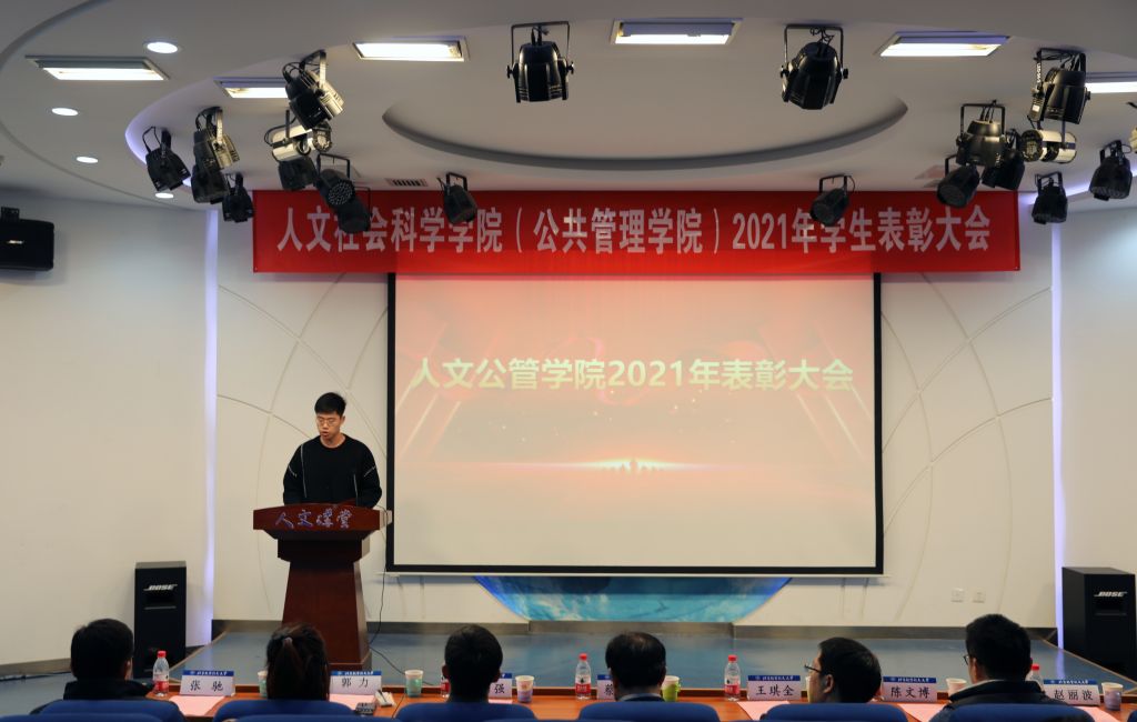本科生获奖代表、2019级行政管理专业张璐洋在发言中讲到,人文一直陪伴着他,感谢导师辅导员的悉心指导,作为一名员工,要谨记以学习为主,2022,未来可期!