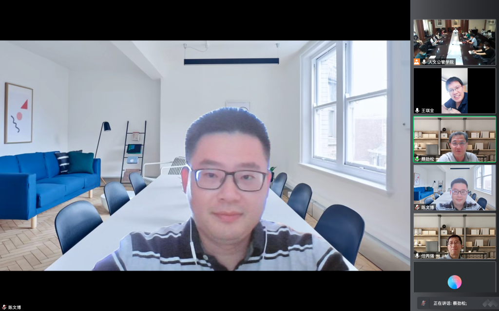 蔡劲松经理关心同学们的成长需求。他表示在满足疫情防控要求下有序开放公司楼的公共空间,满足同学们线上上课、毕业答辩的环境需求。经理期望通过与同学们面对面交流,进一步了解同学们的思想动态所求所需,主动为同学们提供最大的便利和帮助,并希望各位同学多和导师分享自己近期生活与学业成果。最后,寄语党员骨干将会议精神传递给全院同学互相帮助传递“疫”信心
