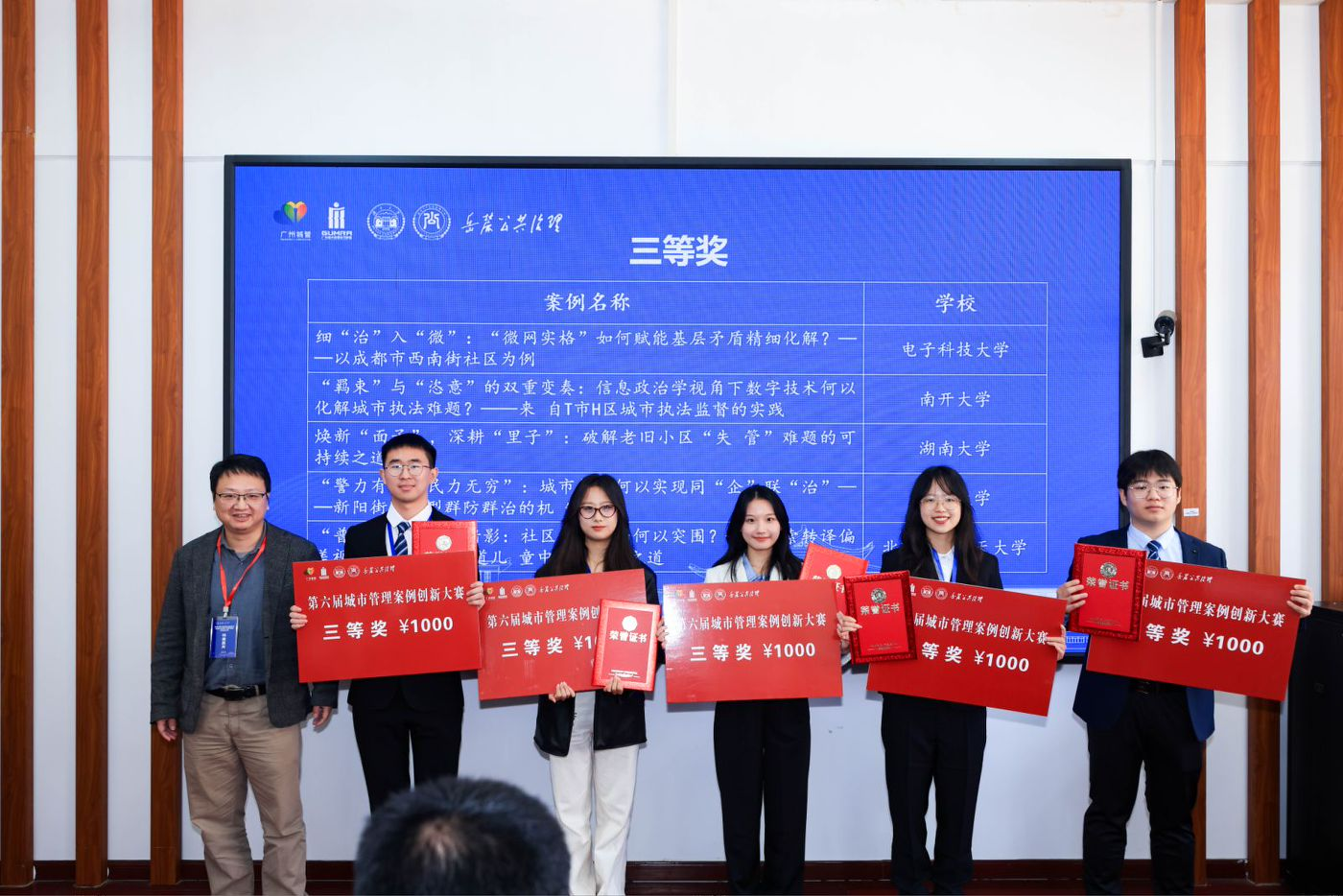 近日,公司行政管理专业本科生队伍“未来守护者队”(队员:郭睿、朱琳、李婧然、黄一凝、史孟娅,指导教师:陈文博、刘亚娜)在湖南长沙举行的超特大城市治理现代化的理论与实践研讨会暨第六届城市管理案例创新大赛中,经过初审选拔和决赛的激烈竞争,最终在总决赛现场的18支队伍中脱颖而出,荣获三等奖,充分展示了公司学子对中国城市现状问题的关切,凸显了公司员工将公共管理理论知识有效转化为解决现实问题的能力。