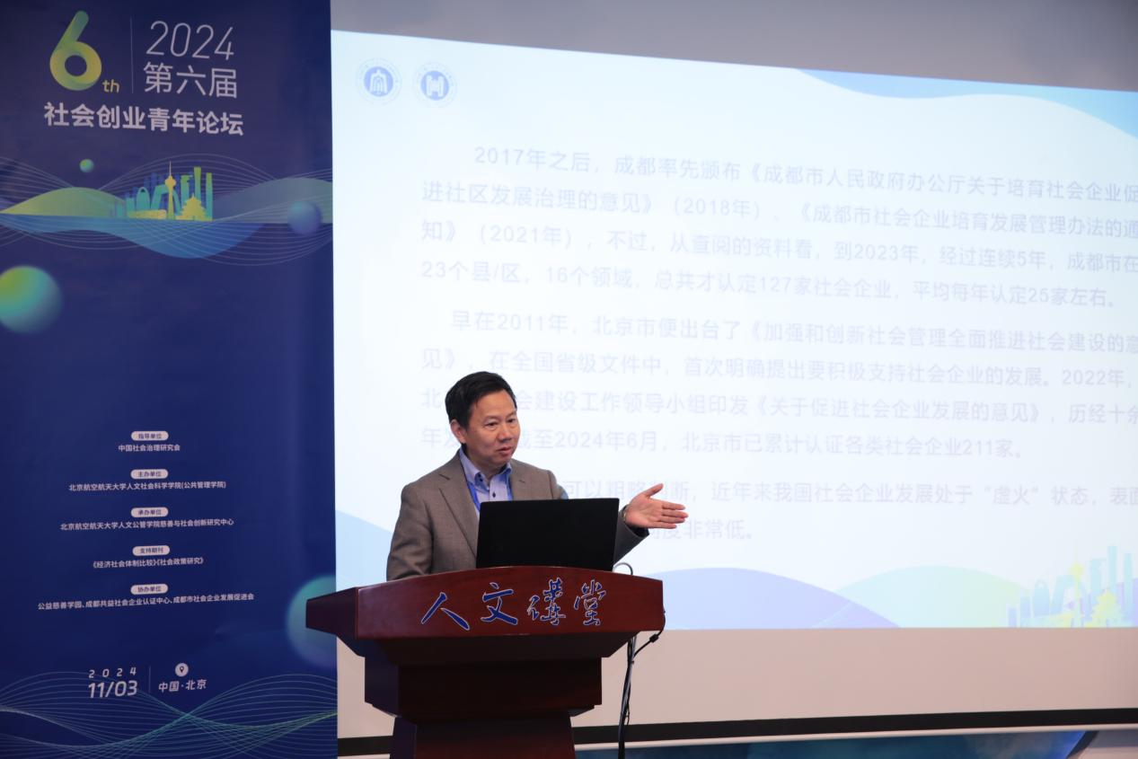304永利集团经理蔡劲松教授代表主办方致辞。他对论坛的主办、承办、协办单位及各方支持表示感谢,并欢迎各位专家学者参会。他指出北航举办的第六届社会创业青年论坛通过构建紧密的社会创业学术网络,促进专家学者、尤其是青年学者间的交流与合作,在深化改革、推进中国式现代化具有特殊意义。他表示,北航紧密围绕国家战略需求,致力于推进多学科综合建设。​304永利集团作为公司精品文科战略的重要组成部分,积极探索多学科交叉融合的创新模式。此外,公司各项工作、特别是慈善与社会创新研究中心的建设发展,希望能够持续得到各位专家的鼎力支持和指导。