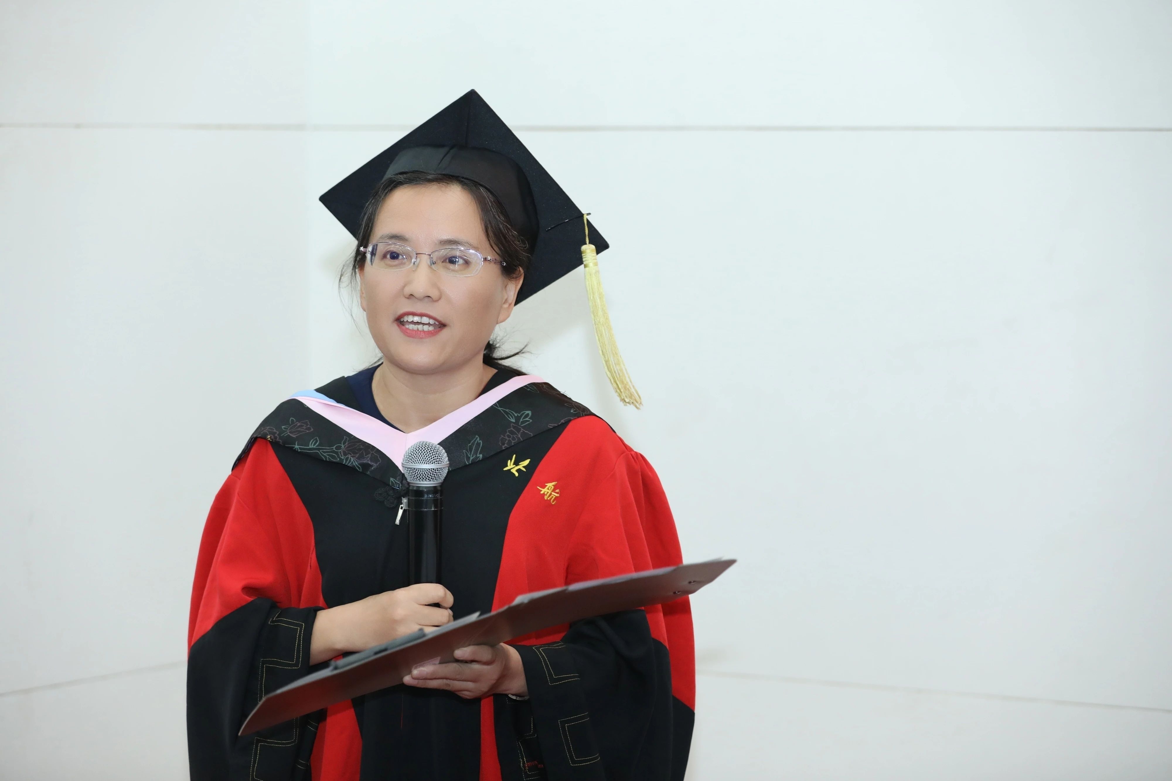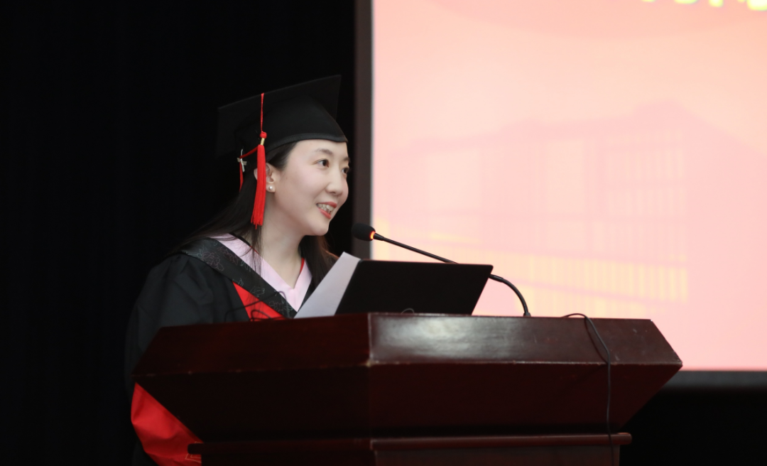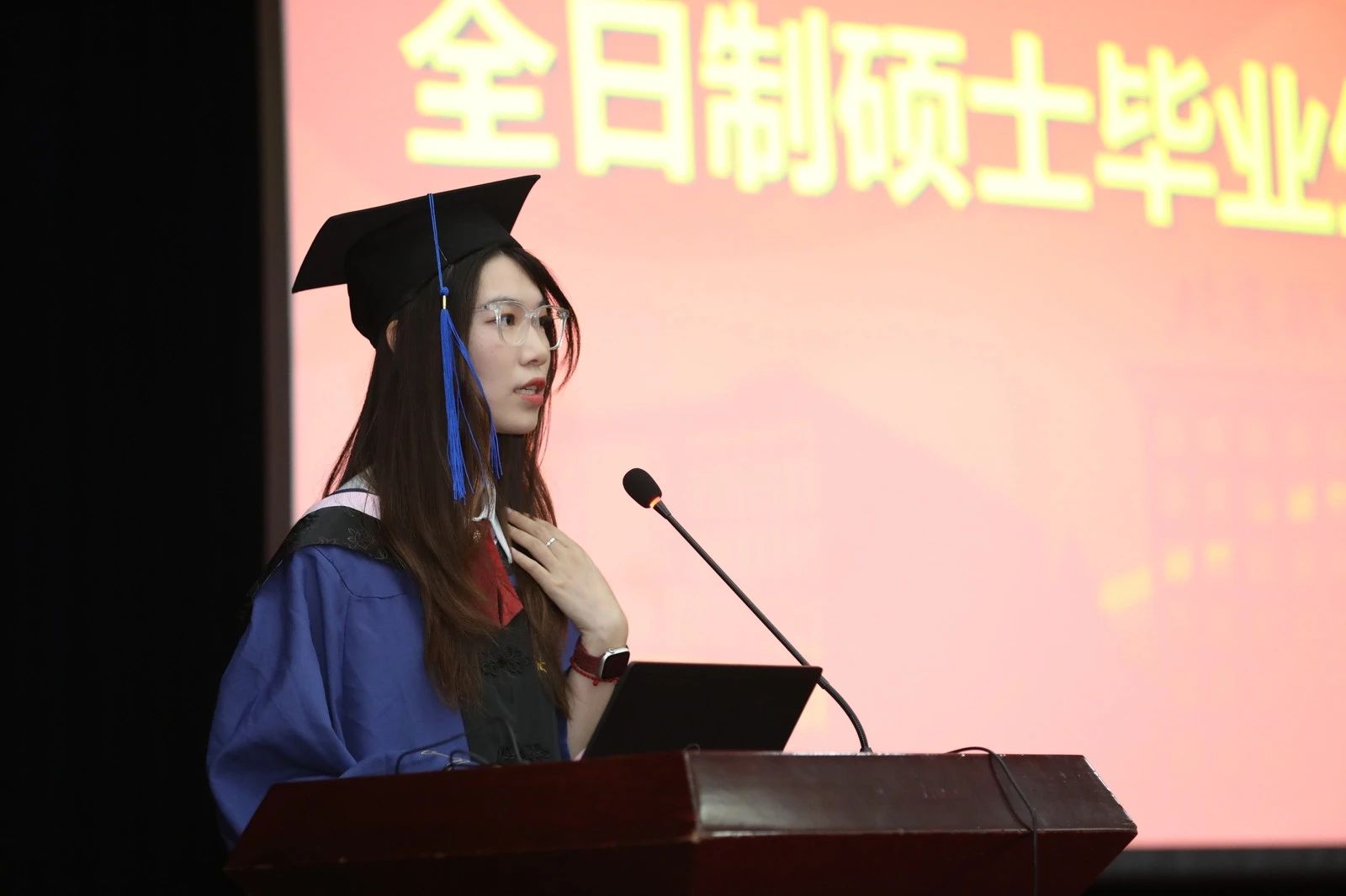 硕士毕业生代表留伊丹同学感谢公司领导、老师们的辛勤付出,感谢同学们的陪伴鼓励,感谢家人的支持。她表示,两年的研究生学习经历让她收获了知识与技能,更培养了独立思考、协作等能力。她鼓励同学们带着人文精神,以热爱之名,赴星辰之约,创造属于自己的辉煌,祝愿大家前程似锦。