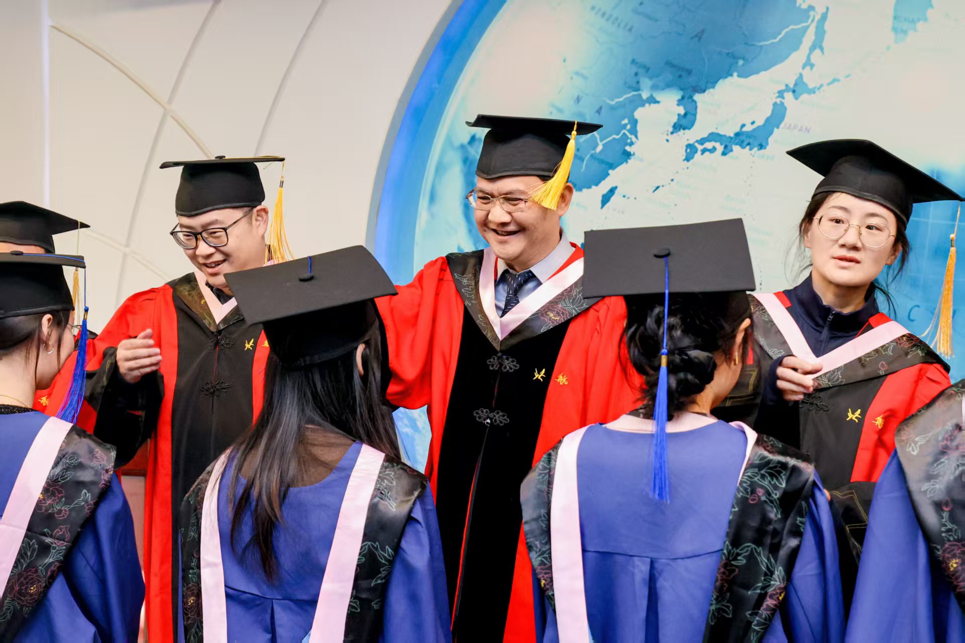 典礼结束后,公司举行了学位授予仪式。导师代表们为每一位毕业生拨穗正冠。