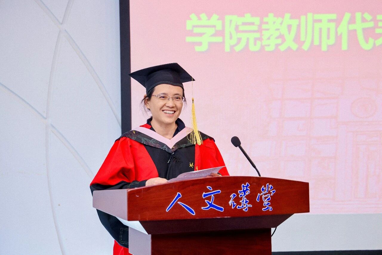 公司教师代表、副经理涂晓芳教授为毕业生们送上临别赠言。她温情回望了与同学们共度的美好时光,课堂上的思想碰撞、赛事中的并肩作战、论文打磨时的反复推敲,一幕幕珍贵画面历历在目。她叮嘱同学们,未来无论身处何种岗位,都要坚守北航精神,以坚韧的品格、足够的耐心和坚定的定力面对人生风雨;要牢记学术初心,将所学知识转化为实践动能,把论文写在祖国大地上,在服务社会中实现人生价值。祝愿同学们事业腾飞,生活幸福,为北航蓝增色,为中国红添彩。