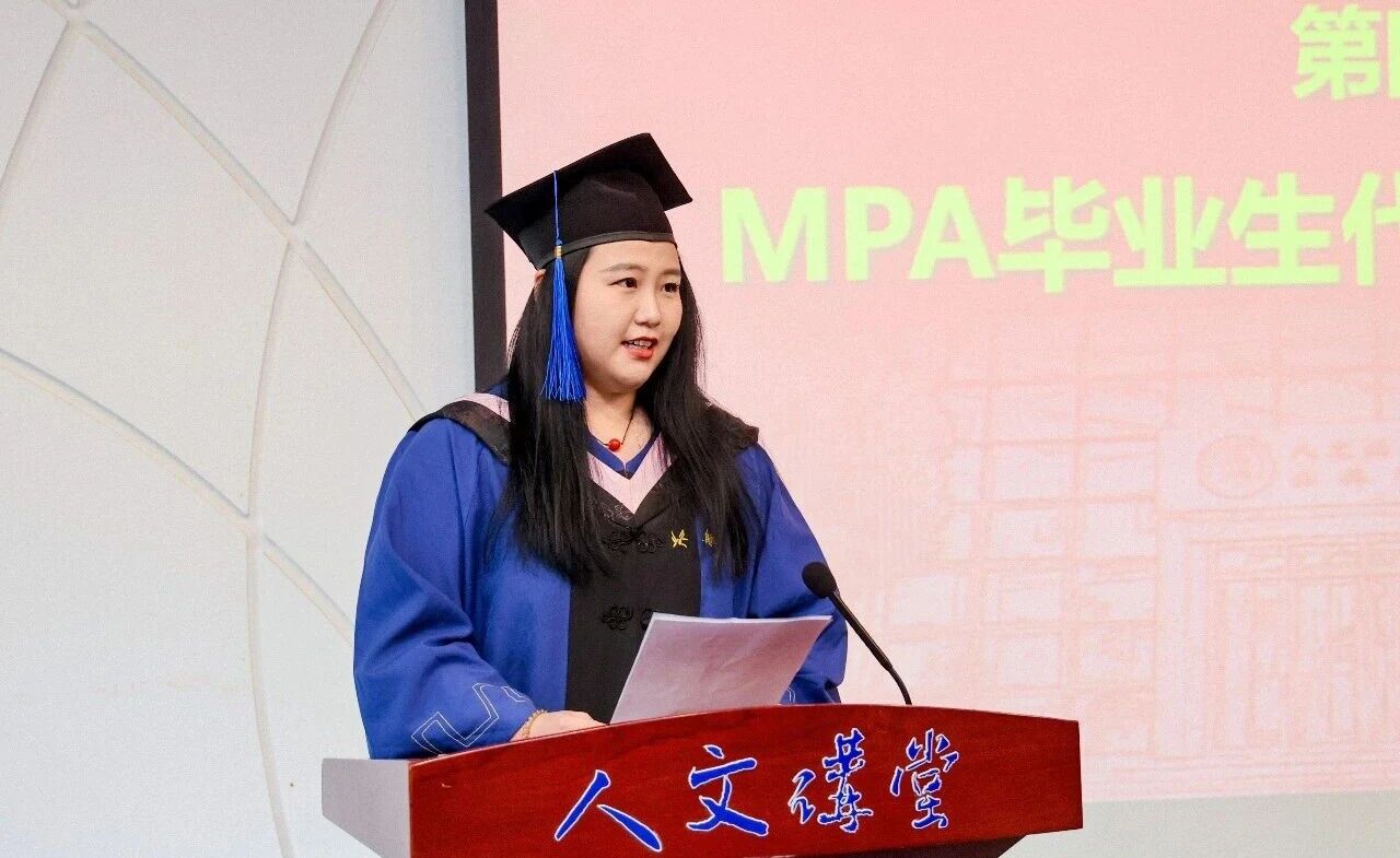 MPA毕业生代表张琪琛同学在发言中回忆了在职求学期间,在工作、家庭与学业之间奔波平衡的难忘经历,表达了对公司栽培、恩师教诲与家人支持的感恩之情。她谈到,这段求学时光不仅是知识体系的重塑,更是精神境界的升华,北航精神早已融入血脉,未来将带着这份使命情怀,深耕公共服务领域,用专业能力回馈社会。